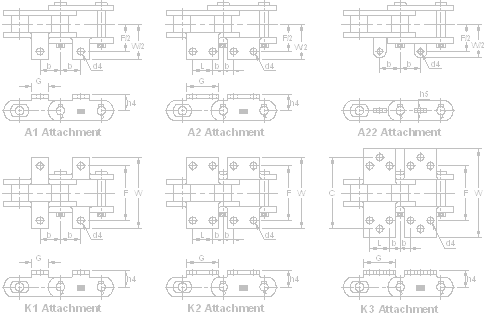 Other steel bushed chains: 20001, 30702, 30703, 825, US850, 830, 844, 844X, 6826, US7038